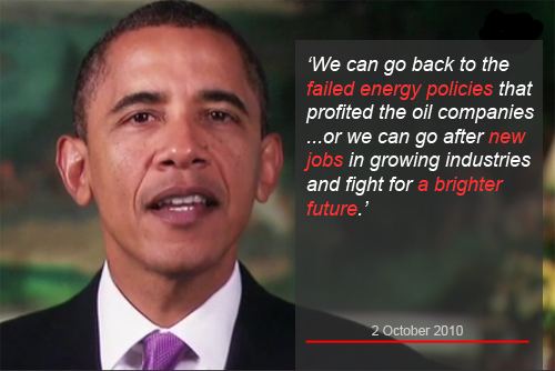 For decades, we’ve talked about the importance of ending our dependence on foreign oil and pursuing new kinds of energy, like wind and solar power. But for just as long, progress had been prevented at every turn by the special interests and their allies in Washington.