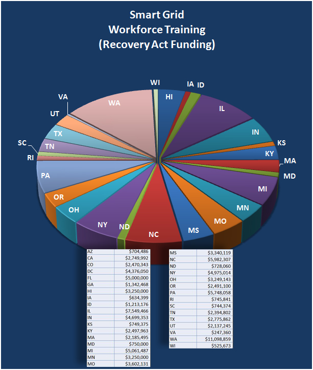 [...] smart grid workforce training. These funds, the latest distributions from the Recover Act, will be distributed among the states, with the largest state grants going to Washington, Illinois, North Carolina, and [...]