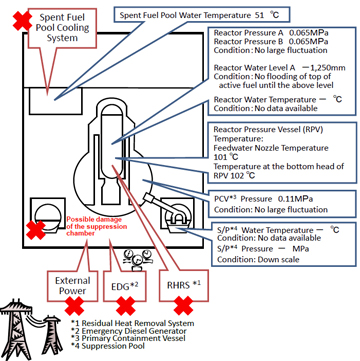 2. Good news/bad news. The good news is that thermometers inside the reactors are back up and running. The bad news is what they show. The reactors are designed to operate at 302°C (575°F). According to the Tokyo Electric Power Company (TEPCO), which owns and operates the plant, Reactor No. 1 hit 394°C (741°F).
